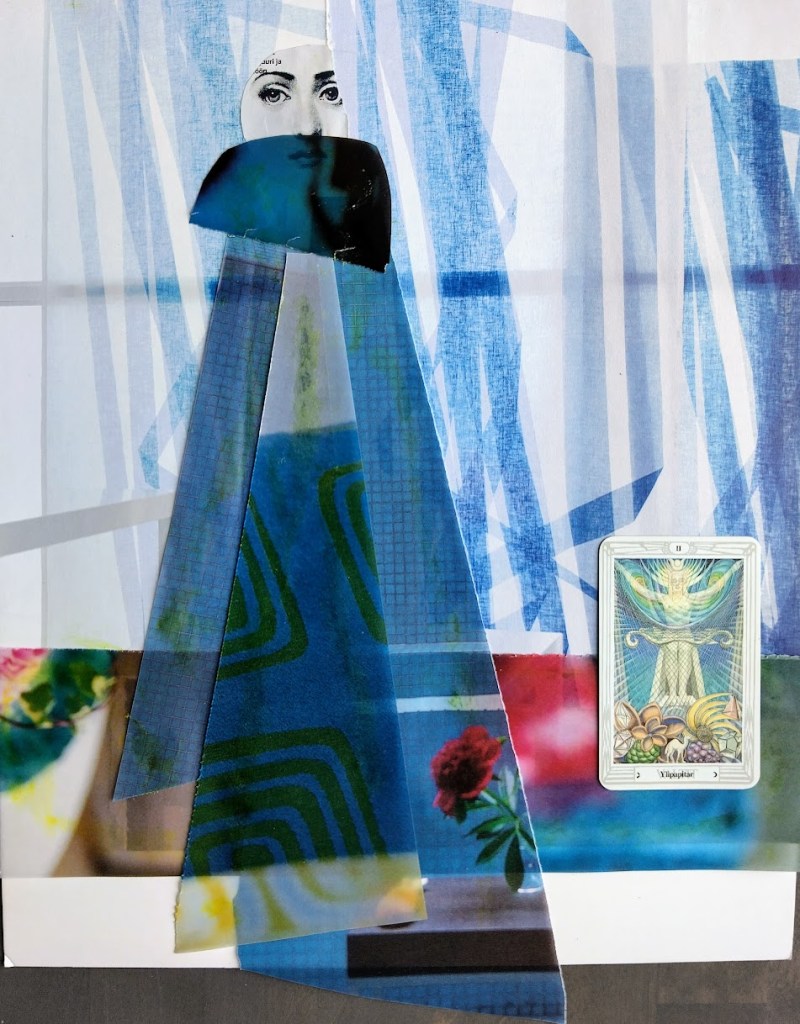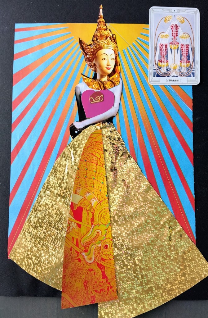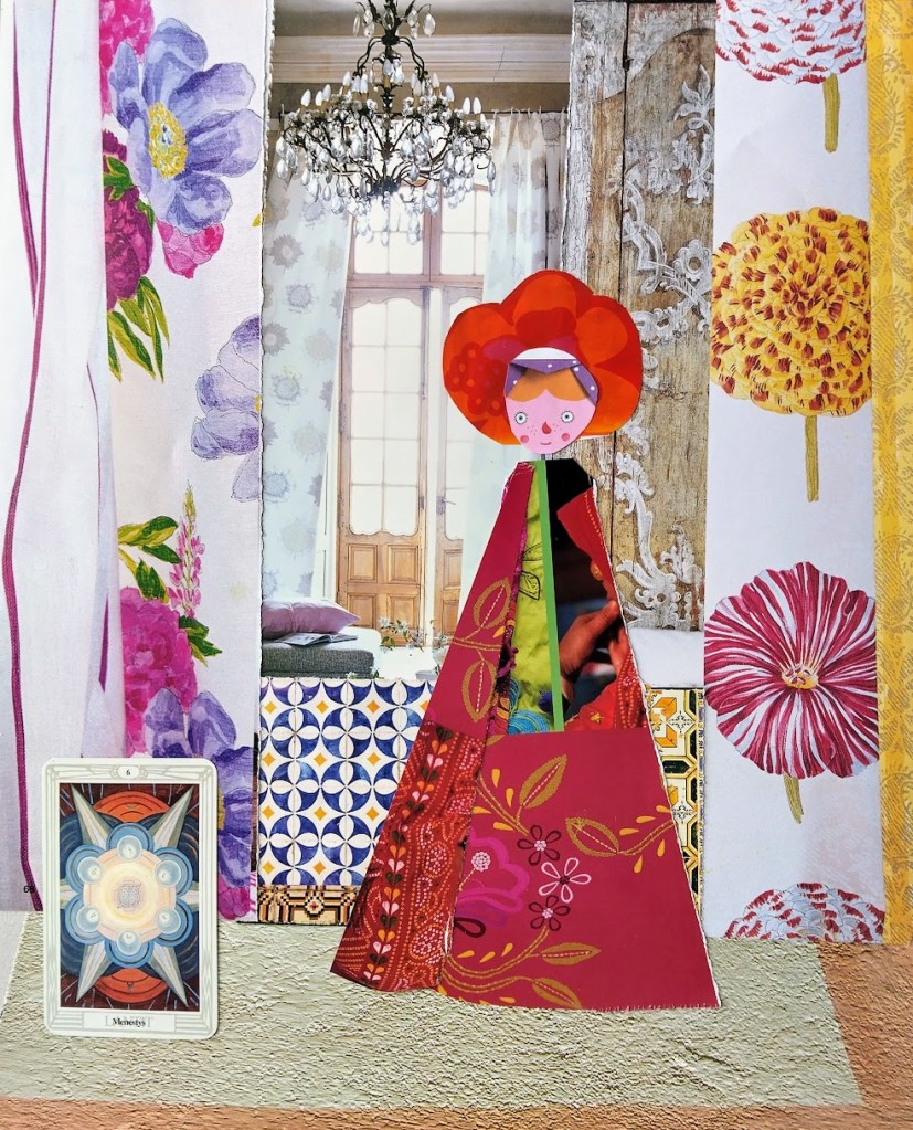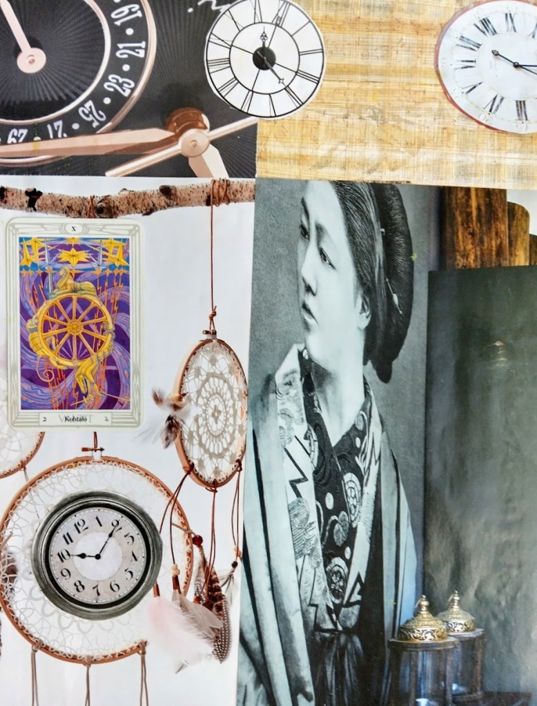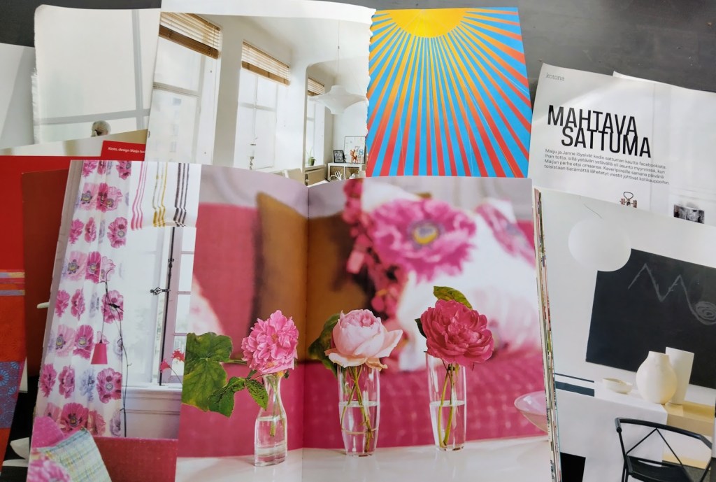 Inspiroivia tarotkortteja on vielä pino jäljellä, mutta innostus hiipui, kun olin käyttänyt kiehtovimmat kuvat. Anna ja Laura riensivät apuun ja toivat pinon kiiltäviä lehtiä.
