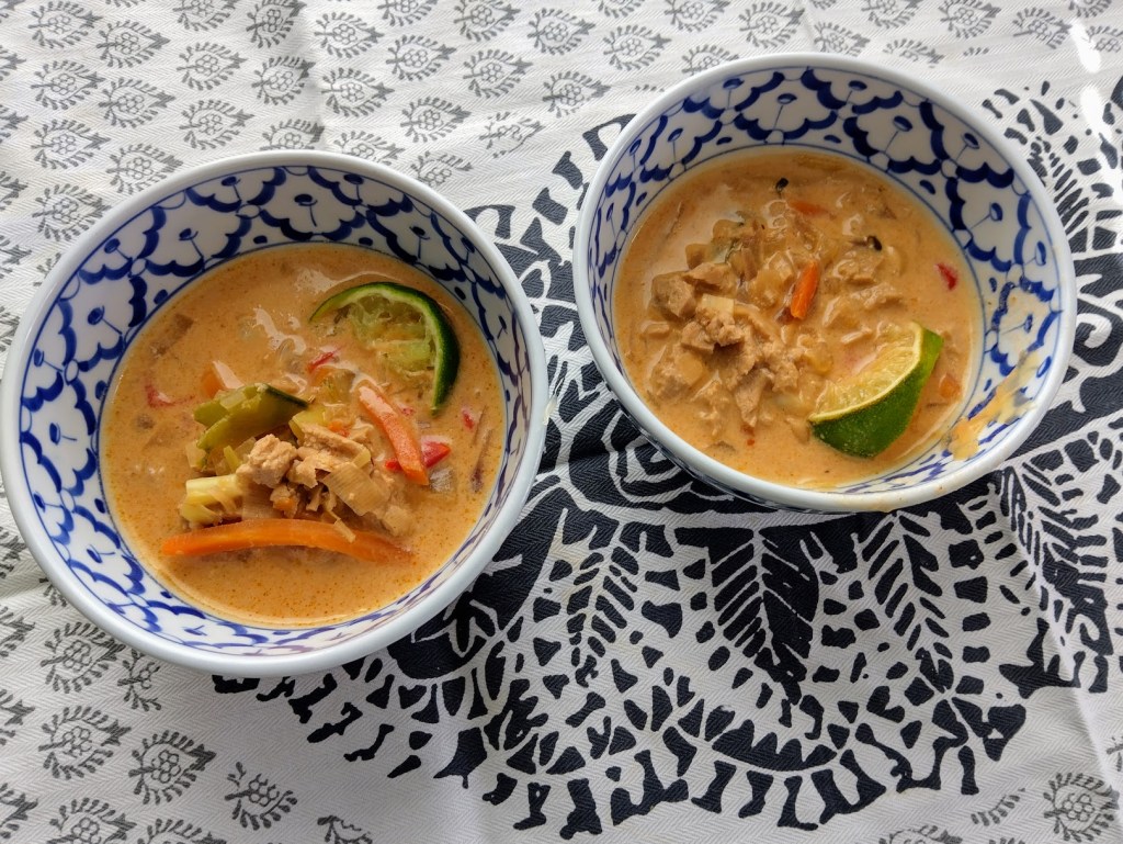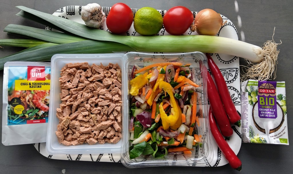 Katselin kalahyllyä kaupassa. Silmiin osui pakkaus nyhtölohta. Siis mitä? Tiedän nyhtöpossun ja nyhtöbroilerin, mutta en ole aikaisemmin nähnyt kalaversiota. Kokkasin thaimaustetun keiton, johon käytin kookosmaitoa.