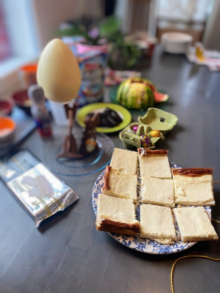 Laura oli leiponut pellillisen mehevää rahkapiirakkaa ja lapset saivat lisäksi pääsiäismunia.
