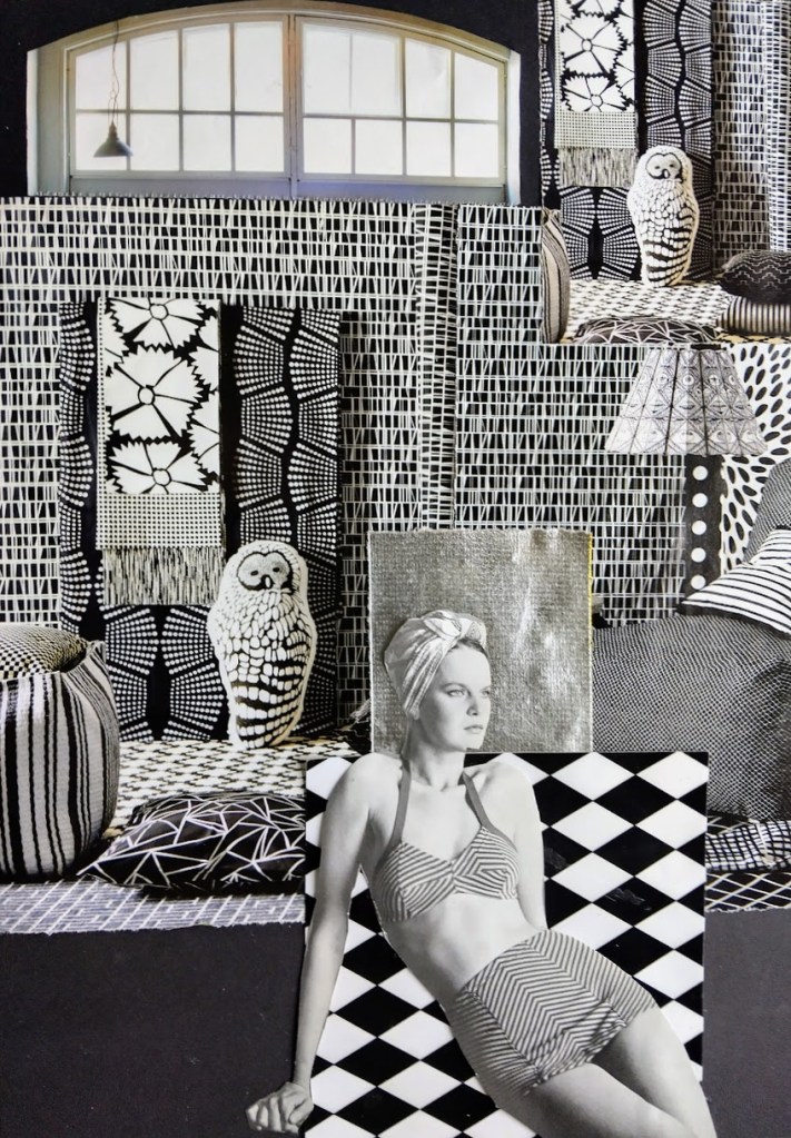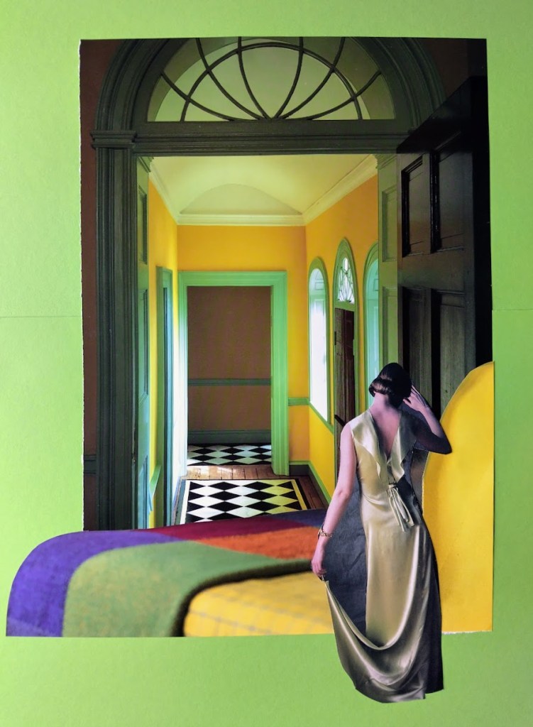 Kollaasit ovat yksi suosikeista. Tarotkorttien innoittama sarja oli kiihottava. Anna on tuonut upeita sisustuskirjoja, joita leikkelen surutta.