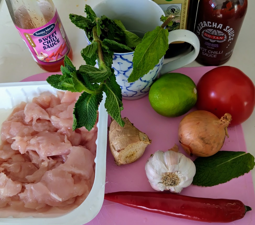 Kuvassa on tuoretta minttua, joka antaa raikkaan vivahteen. Tavallinen maustamaton broileri saa mausteiden ansiosta makunystyrät heräämään.