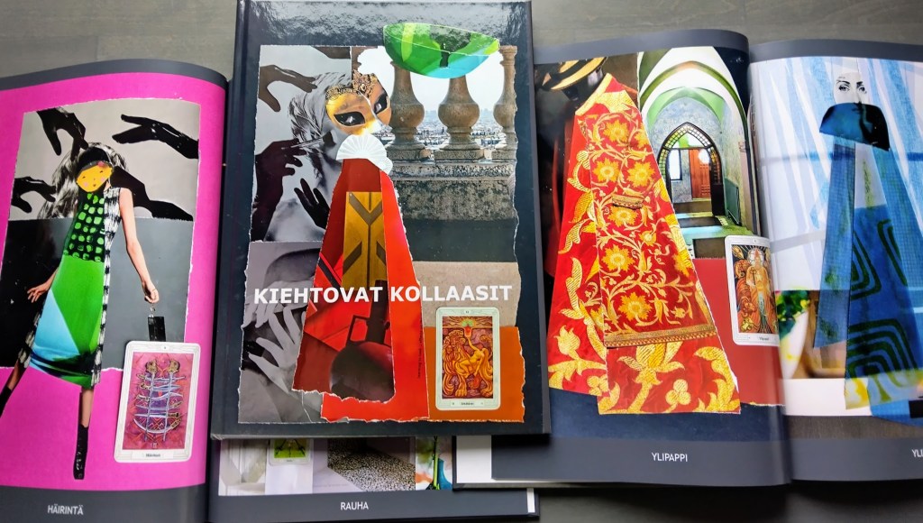 Jaana toi tullessaan postista tilaamani Ifolor-kirjapaketin. Kiehtovat kollaasit ovat nyt kovissa kansissa. Olen tyytyväinen, että olen saanut jotain aikaiseksi.