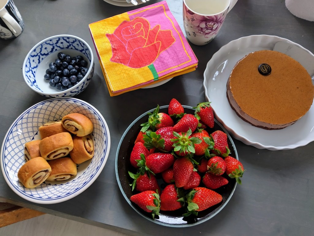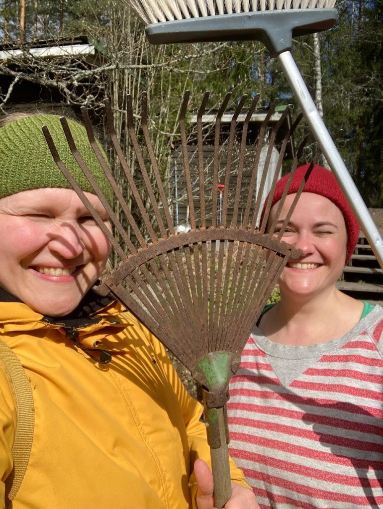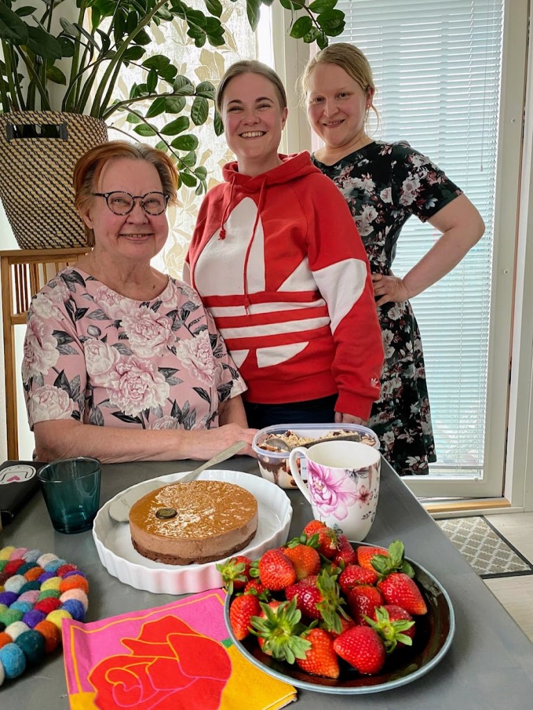 Juhlistimme jo eilen äitienpäivää kymmenen hengen voimin. Anna ja Laura kunnostautuivat käymällä laittamassa mökin kesäkuntoon.