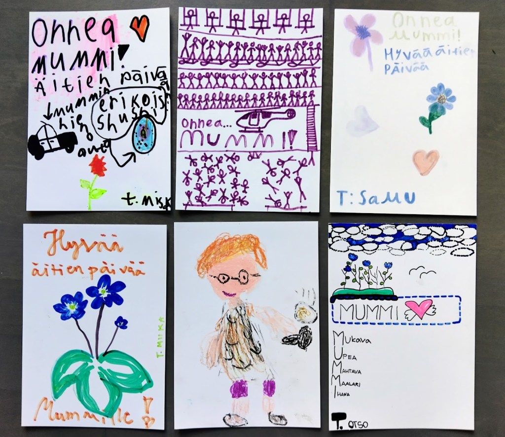 Ilahduin hurmaavista lastenlasten korteista. Bonuksena vielä Miikankin taiteilu.