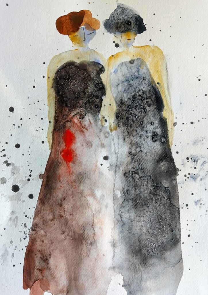 Akvarellimaalaus on kiehtovaa, jos rakastaa yllätyksiä. Maalaan kerroksittain ja yritän malttaa antaa työn kuivua välillä, jotta värit eivät sekoitu vaan kuultavat toistensa alta.