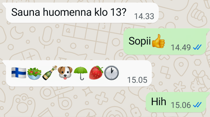 Jaana ja Fidel tulivat iltapäivällä sadevarusteissa. Tilasin läheisestä Melodista pizzan kotiin. Se oli yllättävän helppoa. Emme ole harrastaneet tällaista palvelua, mutta kokemus oli niin positiivinen, ettei taida jäädä ainoaksi.