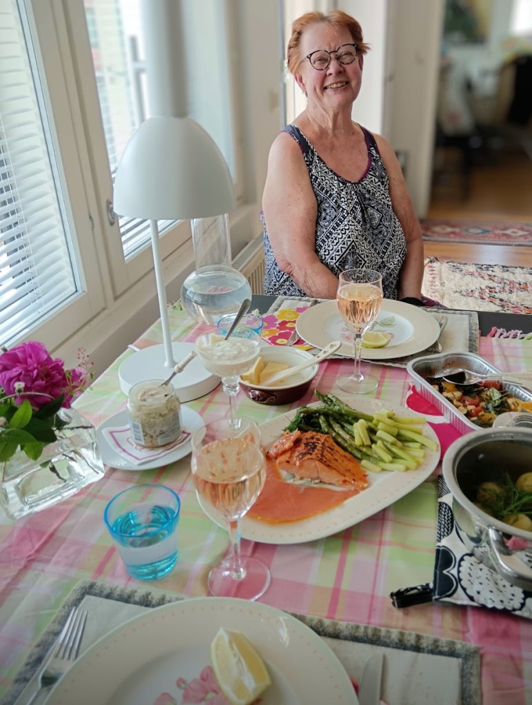 Meillä oli Jaanan kanssa rentouttava juhannusaatto. Joimme siskon kanssa skumpat parvekkeella ja nautimme saunan jälkeen ylellisen lounaan.