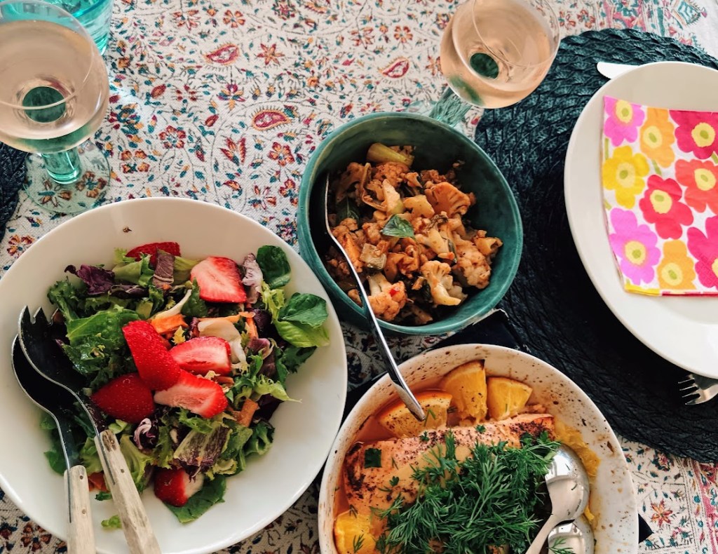 Jaana paistoi lohta ja teki kesäisen salaatin. Kotiruokaa parhaimmillaan.