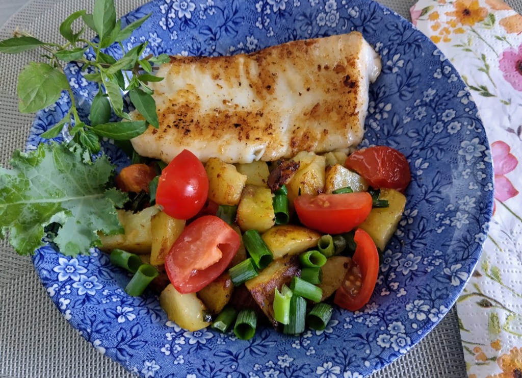 PAISTETTUA LOHTA JA VÄRIKKÄITÄ VOKKIKASVIKSIA