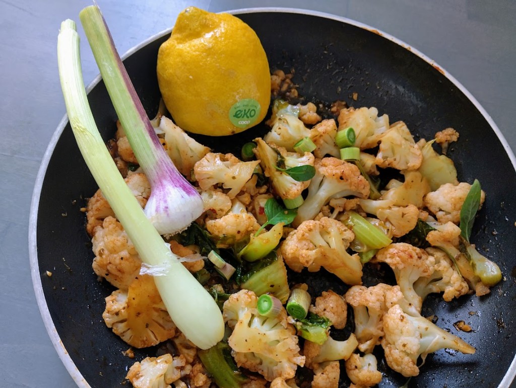 Yhteistyö on voimaa ja toimii hyvin. Höyrytin kukkakaalia ja viimeistelin sen marinadilla, jossa oli reilusti mausteita.