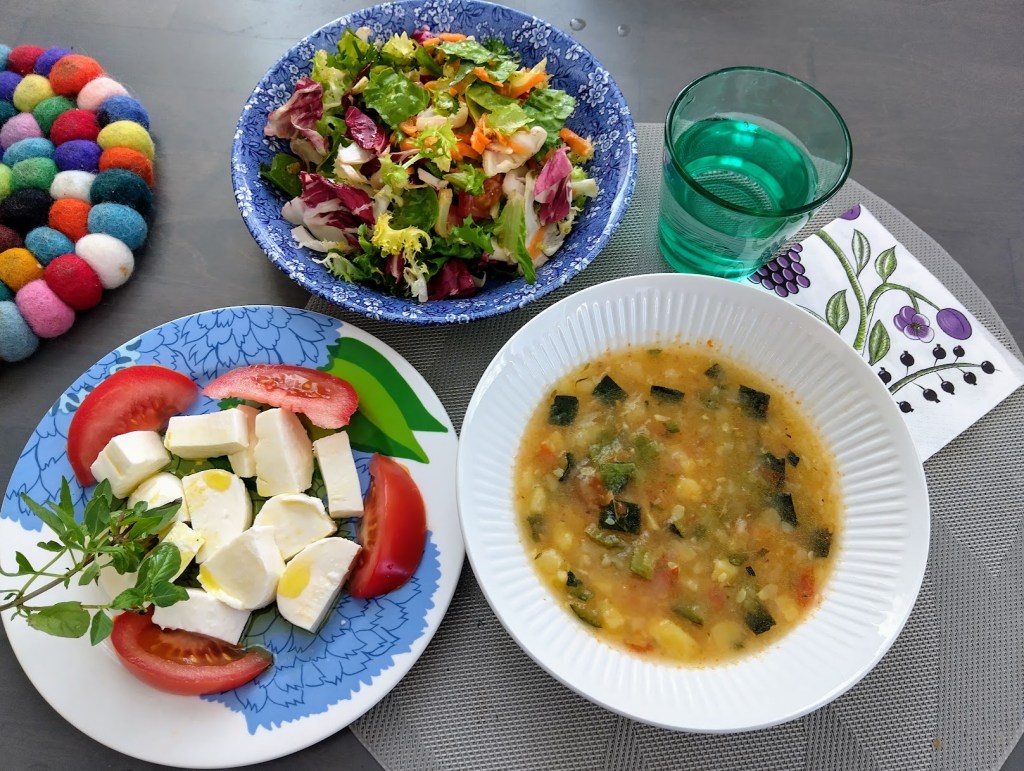 Tukala helle jatkuu… Kokkasin kevyttä kasviskeittoa, vaikka lämmintä ruokaa ei erityisemmin tee mieli.