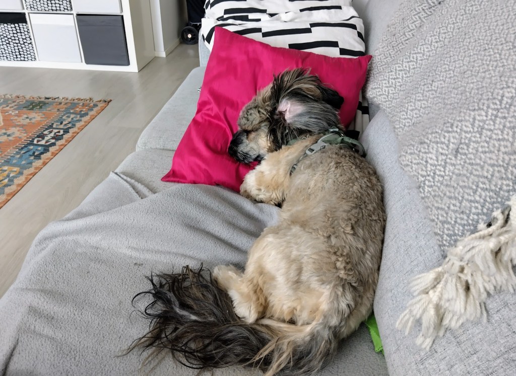 Nyt tuntuu hyvältä lenkkeillä omaan tahtiin, maalata keittiön pöydän äärellä ja kokata lempiruokia. Suosin edelleen marjoja, hedelmiä ja kasviksia. Jääkaapista löytyy luonnonjogurttia, raejuustoa ja piimää. Uusi reppu tuli tarpeeseen, sillä ostokset painavat. Mummukärrykin löytyy, mutta käytän sitä vain äärimmäisessä hädässä. Siis kun saan ruokavieraiksi muitakin kuin siskon. Tosin sillä rintamalla on ollut hiljaista.