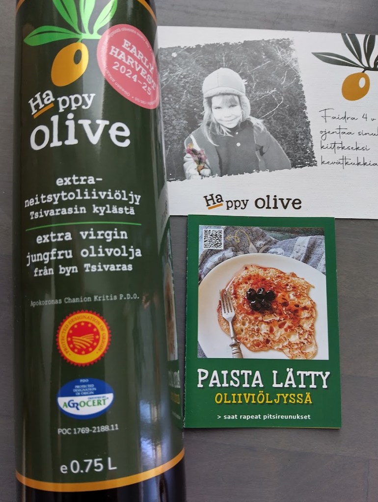 Sisko uskoo, että Happy Olive alentaa kolesterolia. Uskon siskoa ja tilasin pullollisen, joka tuli postipakettina parissa päivässä.