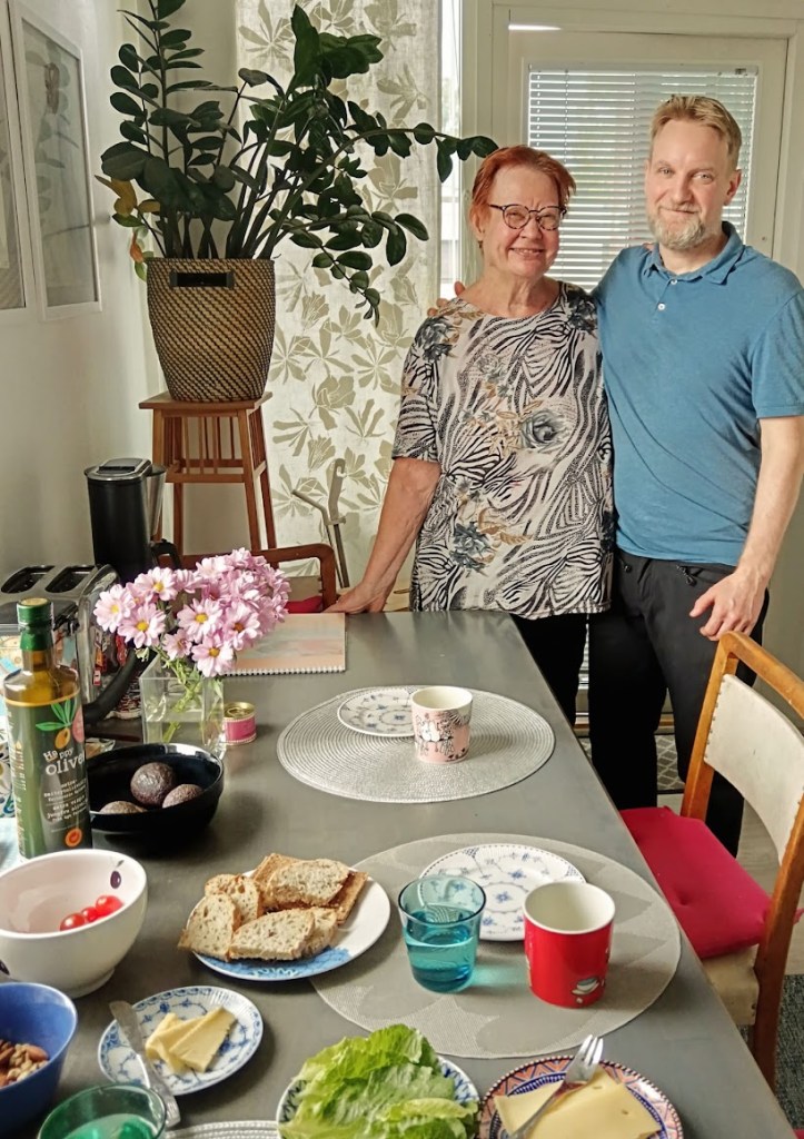 Arkikuviot palaavat. Sisko saapui vasta aamuyöllä kotiin. Hän kävi hakemassa Fidelin ja molemmat tulivat luokseni kahville. Kokkasin tukevan munakkaan ja katoin pöytään tuoretta kaura-pellavaleipää, juustoa ja salaattia. Hyvin maistuivat. Istuimme aurinkoisella parvekkeellani ja Jaana kertoi laajasti matkasta. Olen seurannut kiinnostuneena matkakertomusta Facessa.