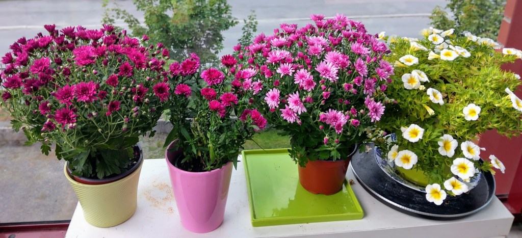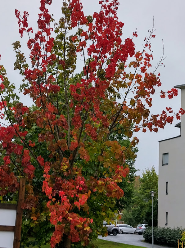 Ulkona oli syksyisen kirpeää, mittarissa vain +14 astetta. Syksyn merkkejä on jo havaittavissa. Kaduilla näkyy keltaisia koivunlehtiä ja puut alkavat punertaa. Pidän ruskasta. Tähän aikaan vuodesta olen aikaisemmin aloittanut innosta piukeana uusia harrastuksia. Ne ovat nyt kaventuneet luovan kirjoittamisen verkkokursseihin, siksi nettiyhteys on tärkeä. Viriketehtävät piristävät mukavasti päiviä. Maalaustarvikkeetkin ovat lupaavasti esillä. Mitä seuraavaksi syntyy, en tiedä ja se tässä onkin jännittävää.