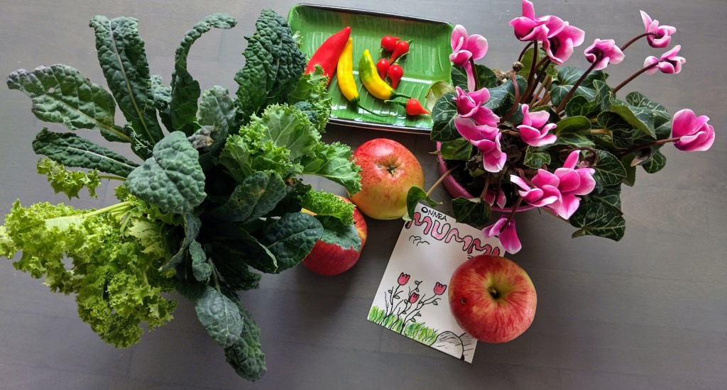 MIIKAN KASVIMAAN SATOA, OTSON TAITEILEMA SYNTYMÄPÄIVÄKORTTI VAIN VÄHÄN MYÖHÄSSÄ, SYKLAAMI KUKKAKAUPASTA