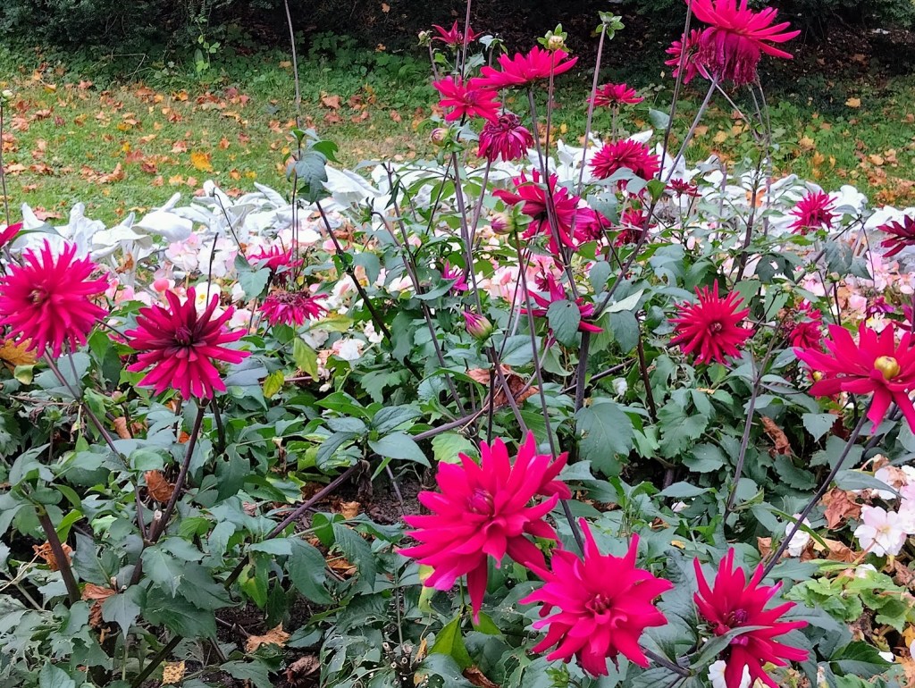 Ihastelin eilen ennen sadetta läheisen puiston syysistutuksia. Maassa on jo runsaasti keltaisia lehtiä, ruskan värejä vasta siellä täällä.