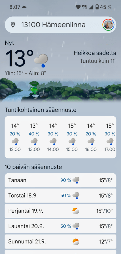 Onnistuin kuitenkin lenkkeilemään kastumatta toisin kuin eilen. Seuraava haaste on puolen päivän aikaan, kun lähden kuntosalille.