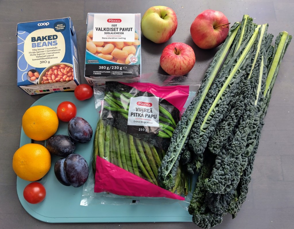 Kaupat ovat pullollaan syystarjouksia. Ostin eurolla kilon pussillisen punajuuria. Niistä syntyi borssikeitto ja pihvejä, joita nautimme parina päivänä. Papujen käyttöä suositellaan lisättäväksi. Kokkaan mielelläni myös tuoretta kalaa.