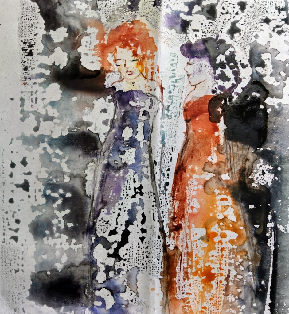 Sain lahjoituksena kuitupaperia. En heti ymmärtänyt sen arvoa, mutta kokeiltuani ihastuin. Akvarellivärit levisivät ihastuttavan usvaisina.