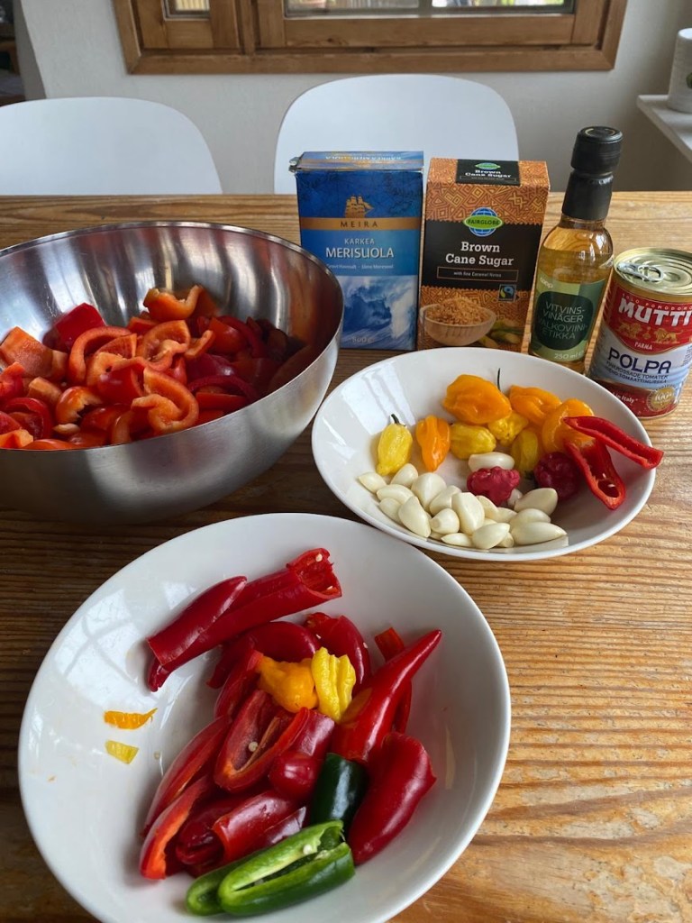 Olin täysin varautunut sateeseen. En kastunut muuta kuin siskon luona saunareissulla. Tosin päivä on ollut kolea ja pimeä. Tänäänkin chili lämmitti, sillä lisäsin sitä rutkasti eiliseen pataan.