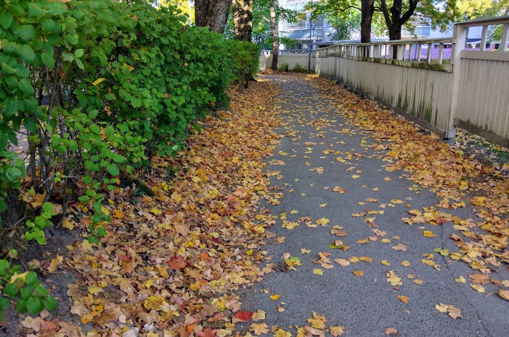Aamu oli kirpeän kylmä. Syksyn merkkejä on jo näkyvissä. Oikaisin kauppaan läheisen liikennepuiston kautta ja ihastelin reheviä istutuksia.