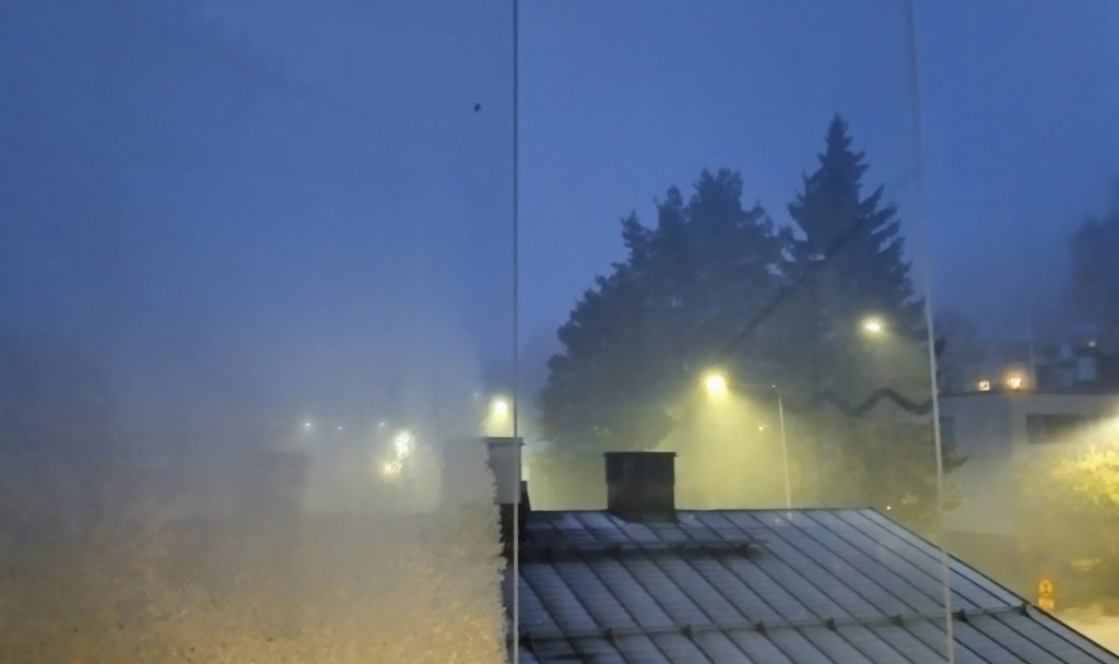 Päivä valkeni kylmän yön jälkeen sumuisena. Pakkasta oli vielä aamukahdeksalta kolme astetta. Lähdin pahaa aavistamatta ulos. Laitoin onneksi tukevat nilkkurit, sillä asfaltin pinta oli jäässä. Olin liukastua jo kotipihalla. Sauvoista ei ollut apua, ne lipsuivat holtittomasti. Pahimpia olivat kadunylitykset. En tykännyt, mutta pääsin kuitenkin pystyssä takaisin kotiin.