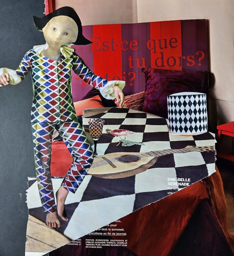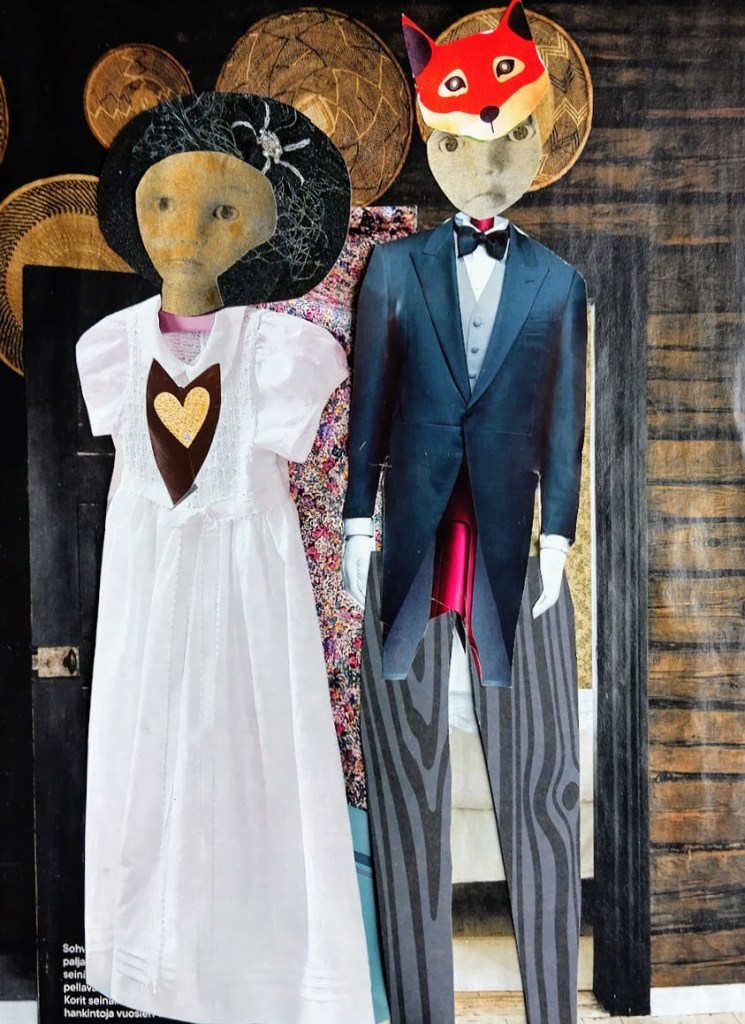 — Mama kertoi olleensa nuorena mukana harrastajateatterissa. Katsokaa, harlekiinin asu ja vekkuleita eläinnaamareita, Simo ja Otto riemastuivat.