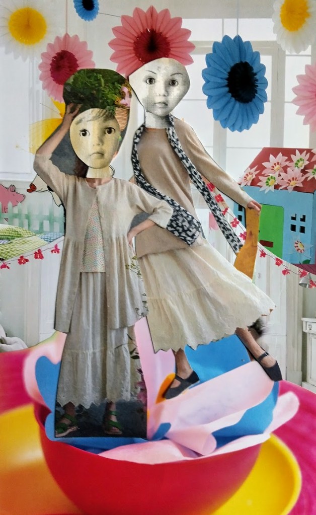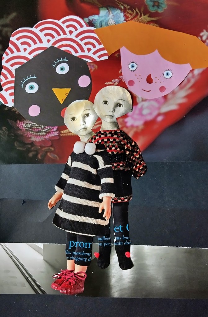 — Arvaa mitä. Muistatko, kun Mama teki meille ihanan Pirpana-satukirjan, kun olimme pieniä? Löysin tuolta komerosta jättikokoisia kuvia. Voitaisiin askarrella sinulle ja Otolle omat ystävät.