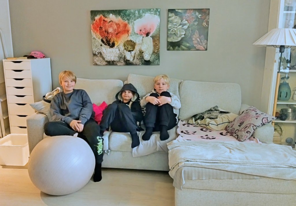 ”Miika ottaa kaikki pojat kyytiin ja lähtee ensimmäisenä. Hän ja Otso jatkavat mökille ulkohommiin. Pikkupojat Samu, Miska ja Visa jäävät sinun iloksesi.”