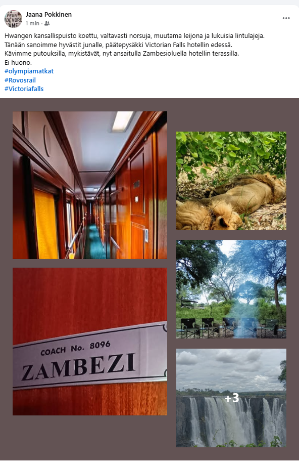 Mukava saada viestejä nuorisolta ja siskolta, jonka luksusmatka on edennyt Victorian putouksille. Kaipasinkin jo päivitystä, vaikka tiesin, että junassa ei ollut kenttää.