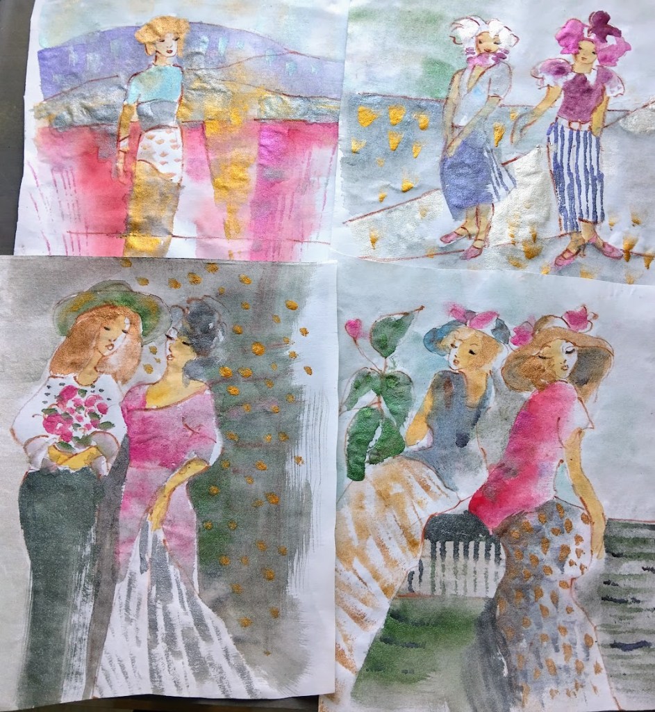 Palasin kiltisti takaisin perinteisen akvarellipaperin pariin. Senkin kanssa voi leikitellä esimerkiksi karkean suolan kera. Tosin kuivuminen kestää, joten lopputuloksen näkee vasta odottelun jälkeen.