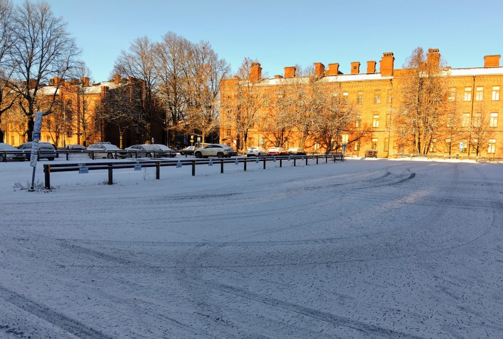Suomeen on tullut talvi. Yöllä on satanut ohut kerros lunta ja pakkasta on kolme astetta.