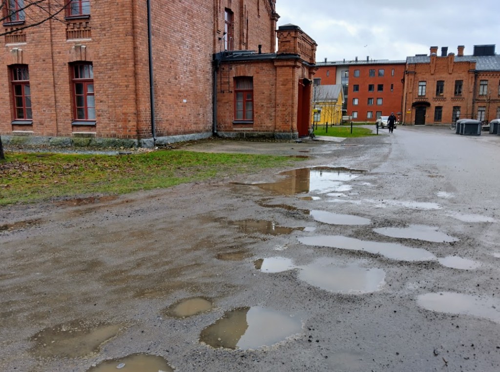 Päivä on vaihteeksi harmaa ja märkä. Vähät lumet ovat sulaneet.