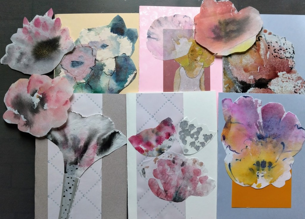 Askartelu ei todellakaan kysy ikää, sillä se jaksaa viehättää edelleen. Pieniä enkelikortteja syntyi sen verran runsaasti, että siirryin kestosuosikkeihin kukka-aiheisiin.
