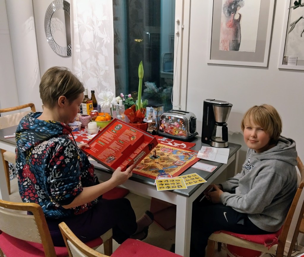 Illan pelit olivat Pekingin mysteeri ja Uno. Minulla oli ongelmia tulkita mysteerikortteja, sillä osa piti lukea punaisen kalvon läpi enkä oikeasti nähnyt tekstiä. Syyllinen löytyi kuitenkin, kun muut vähän auttoivat vihjeiden tulkinnassa. Unossa Samu ja Miska olivat ylivoimaisia.