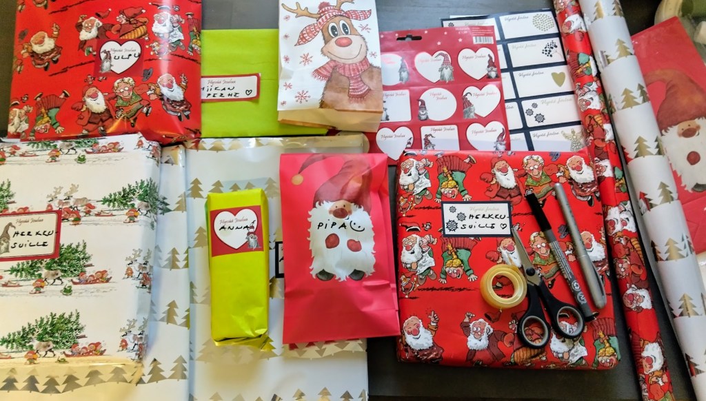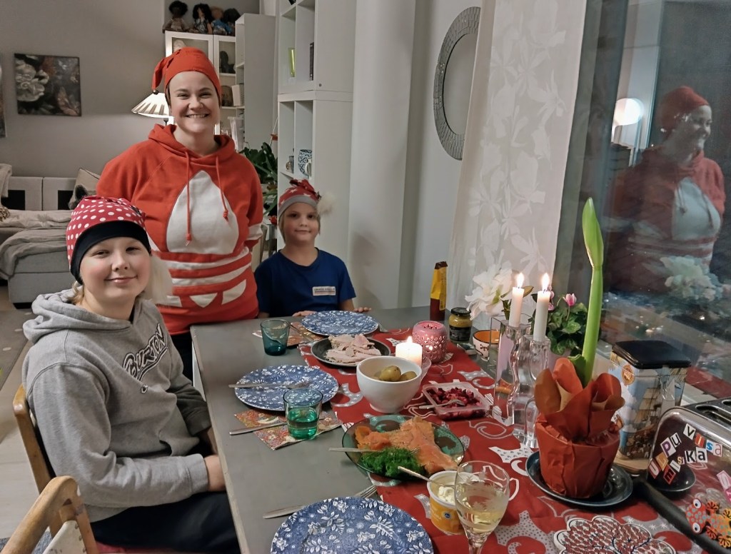 Jouluaatto ja maa on valkoinen, vaikka lumisadetta ei ollut luvassa. Vietämme pyhät perinteiseen tapaan. Anna, Samu, Miska ja Pipa tulevat illan edellä. Miikan perhe poikkeaa loppuviikolla päiväseltään, sillä pieneen kotiini ei mahdu kovin monta yövierasta.