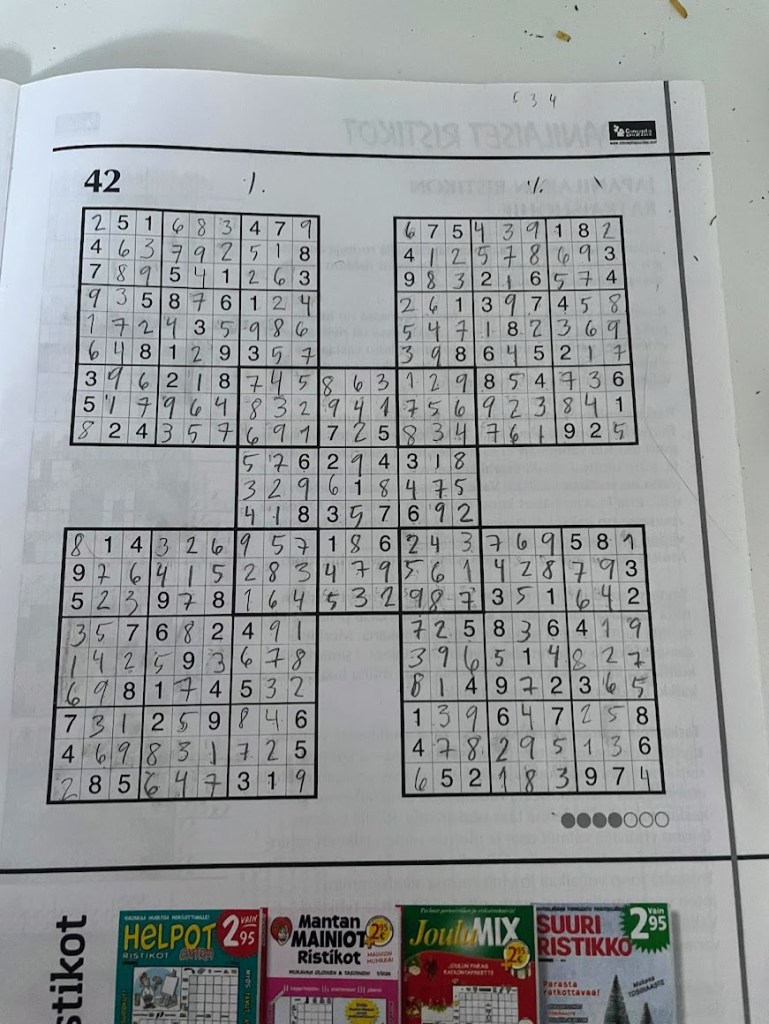 Pyhät sujuivat vauhdikkaasti hyvässä seurassa. Jouluruuat maistuivat Annalle ja minulle tapaninpäivään asti. Samu ja Miska sanoivat jee, kun tuli puhe spagetista ja jauhelihakastikkeesta. Oli mukava täyttää ristisanatehtäviä, pelata lautapelejä ja katsella iltaisin piirrettyjä elokuvia.
