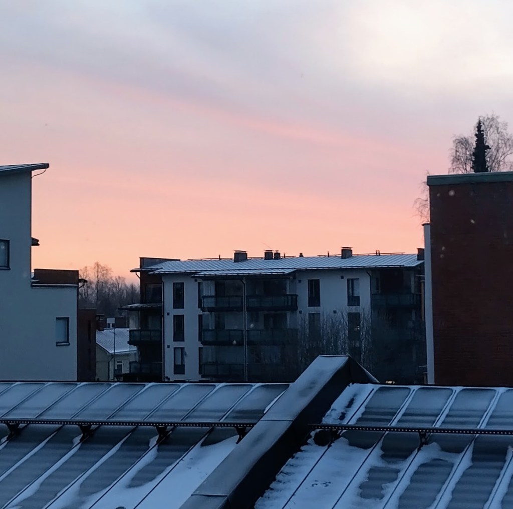 Pakkanen paukkuu, mittarissa on -16 astetta. Sisälläkin on viileää. Vuoden vaihteesta on selvitty rauhallisesti. Katselin mahtavaa ilotulitusta puolen yön aikaan aitiopaikalta parvekkeelta Myllymäen suunnalta. Aamulla sitten nukutti makeasti.