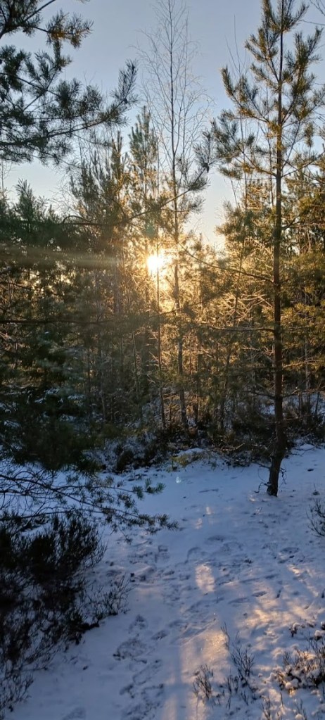Vuosi vaihtuu kireässä pakkasessa. Mittarissa oli aamulla – 11 astetta. Pihapiirissä on lunta ja loppuviikolla on luvassa lisää. Ulkoilu sujuu hyvin nyt, kun tuulikin on lauhtunut. Jääkelejä en kaipaa. Otin ensimmäisen kerran tänä talvena untuvatakin käyttöön.