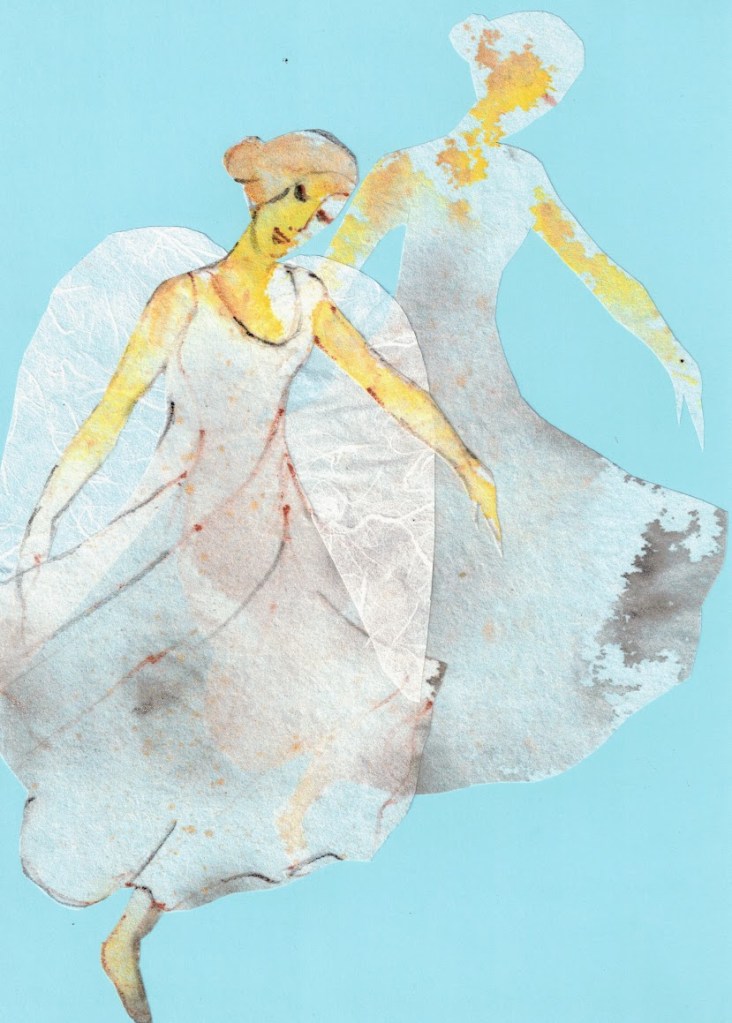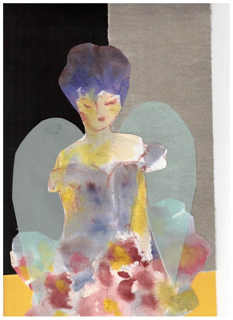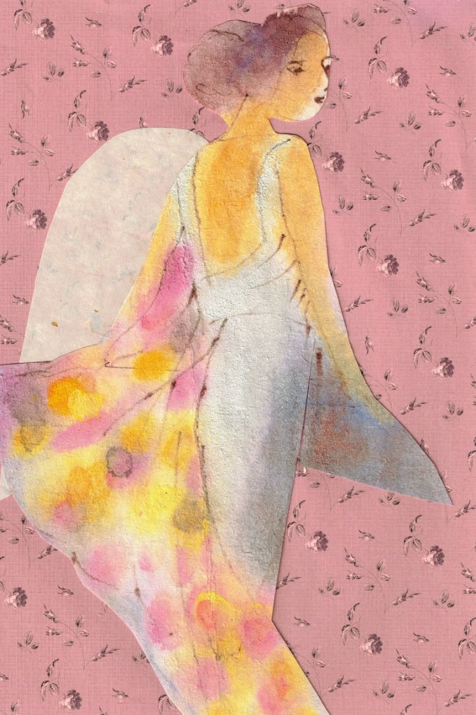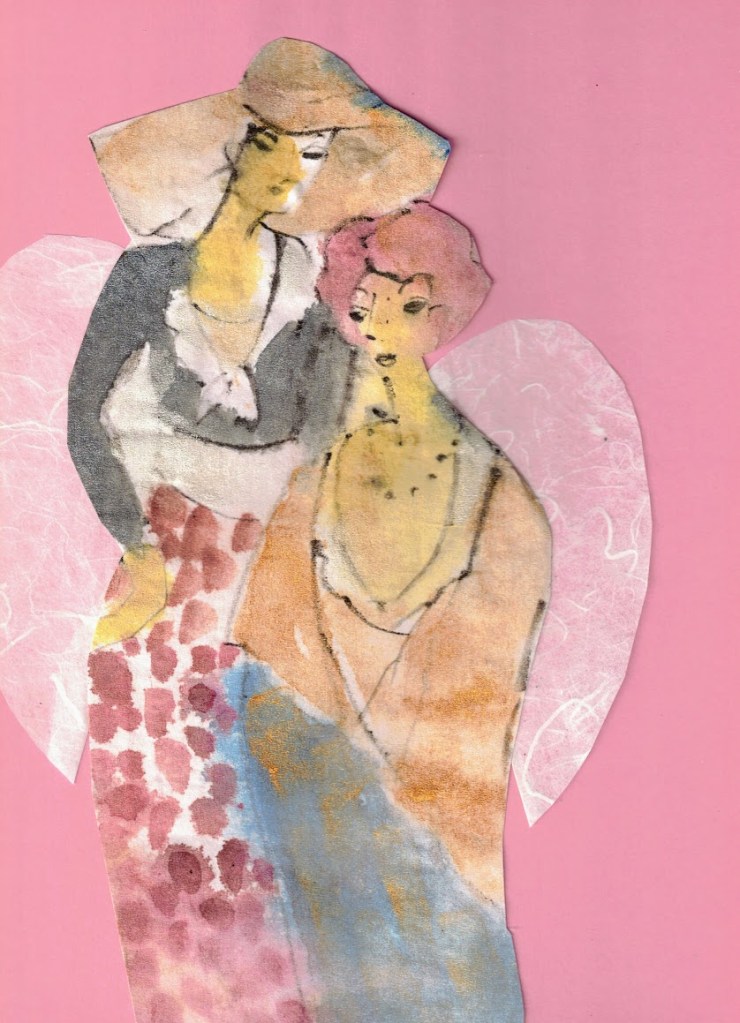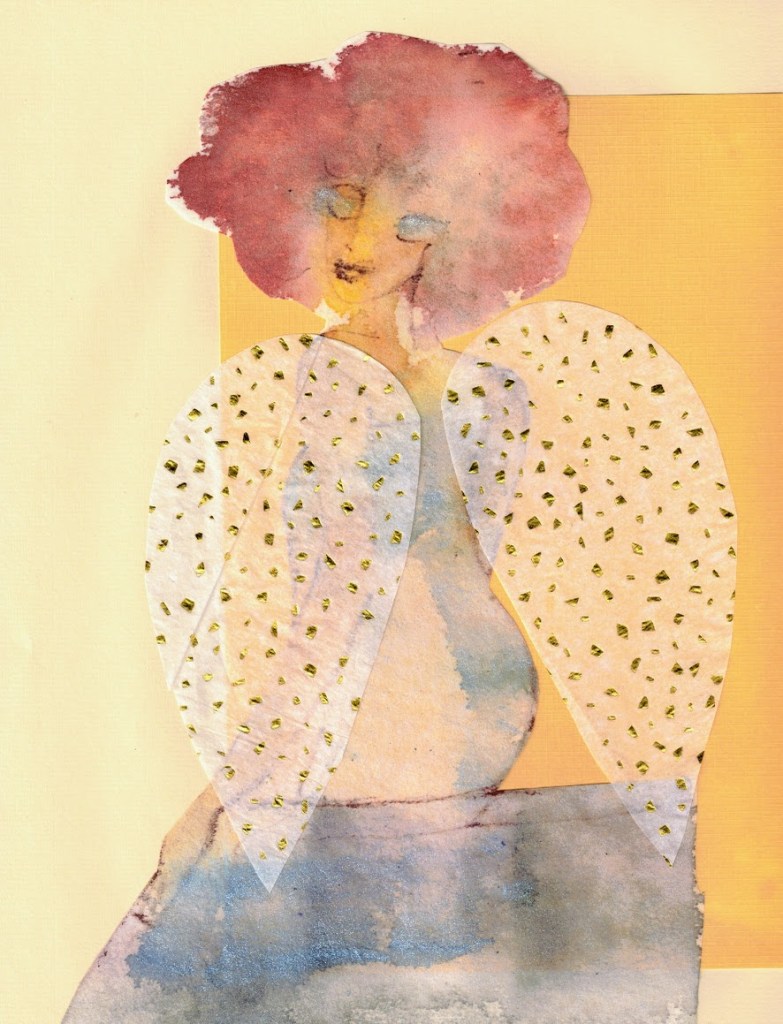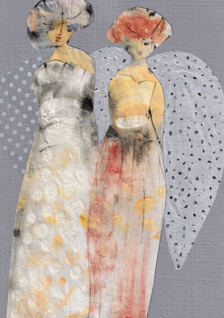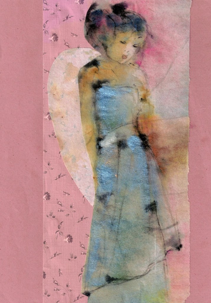 Enkeliteema on vienyt mennessään. Koska askartelutarvikkeet ovat jääneet pysyvästi pöydälle, jatkaminen on helppoa. Tässä parin viime päivän tyttöset.