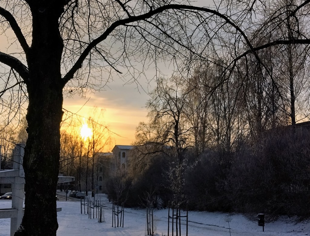 Pakkassää jatkuu päivästä toiseen ja lumi narskuu kenkien alla. Päivät ovat mukavan kirkkaita.