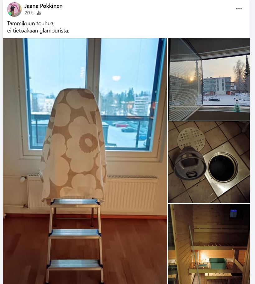 Kipakka pakkanen, -17 astetta. Aamulenkki tehty. Odottelen soittoa Länsi-Uudenmaan hyvinvointialueen palveluohjaaja Janitalta. Toiveikas hankkeeni muuttaa yhteisölliseen asumiseen Espooseen on alkanut takkuisesti. Janita on yrittänyt soittaa jo joulukuun puolella, mutta olen tehokkaasti estänyt vieraan numeron. Nyt hän otti yhteyttä sähköpostin välityksellä.