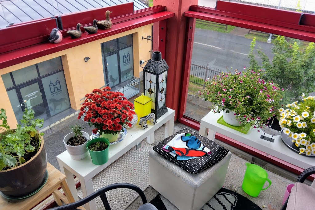 Pieni parvekkeeni herää keväisin eloon kantaessani sinne heleitä kukkia ja juomalla päiväkahvit auringonsäteiden siivittäminä. Kukallinen lierihattu nököttää hattuhyllyllä hylätyn näköisenä. Lasken kuukausia. Ehkä jo maaliskuussa nenänpääni osoittaa etelän suuntaan, kun istahdan korituoliin torkkuhuopa ympärillä.