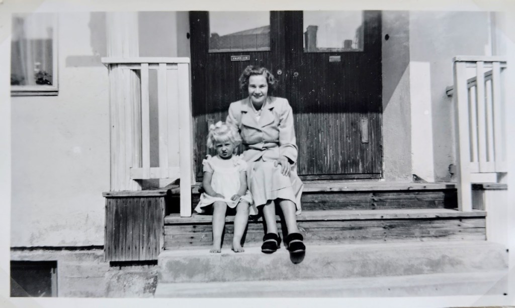 Marja-Leena ja Martta Lahdensivuntiellä Hämeenlinnassa 1950-luvulla