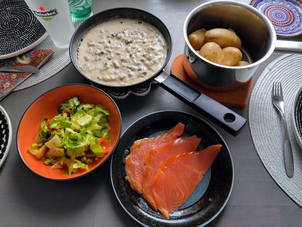 Kokkaan kelpo annoksia, joita lämmitän parina päivänä. Se toimii, sillä annoksia voi muunnella esimerkiksi raejuuston ja salaatin avulla. Jääkaapissa odottaa valmis pinaattikeitto, kun kaipaan vaihtelua.
