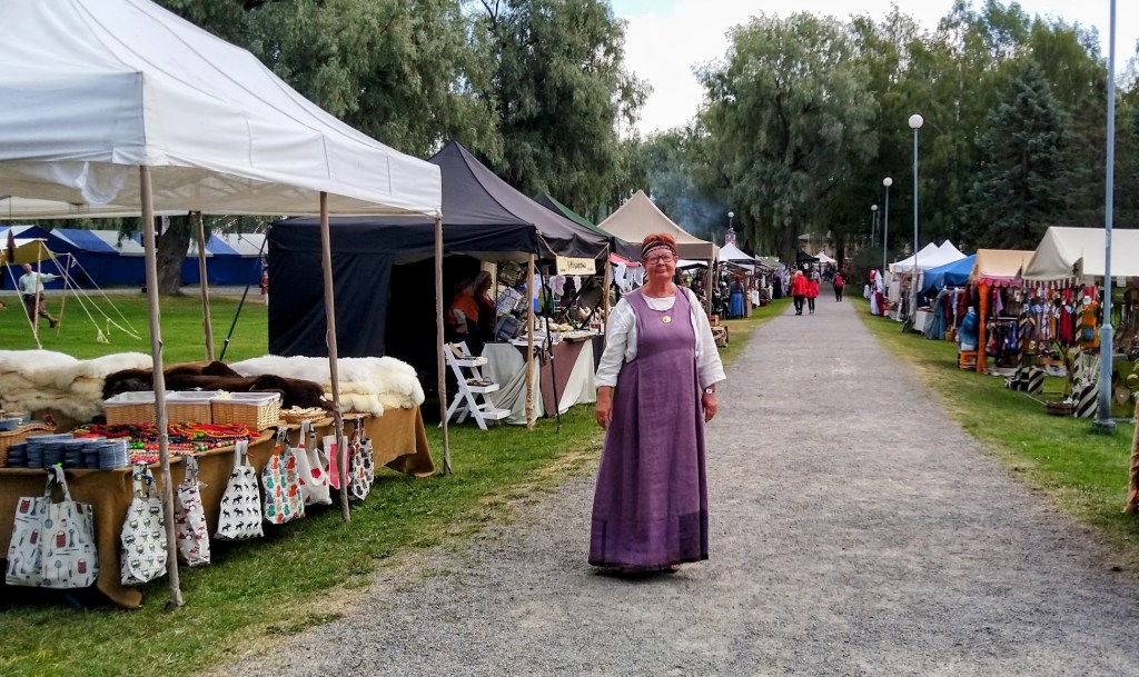 ”Mama Maddalena lupaa vain hyviä tarotennustuksia”. Näin mainostin useana kesänä Hämeen keskiaikamarkkinoilla. Vuokrasin ajan henkeen sopivan pitkän hameen. Jo seuraavana kesänä pukeuduin vanhasta violetinharmaasta pellavapöytäliinasta ommeltuun ikiomaan hamoseen. ”Tämä on haute couturia, käsityönopettaja Lissu hymyili tehdessään muotolaskoksia sovituskopissa ison peilin edessä. Hän ompeli myös valkoisen ohuen aluspuvun, jonka helmat vilkkuivat kävellessäni mukulakivikäytävillä.