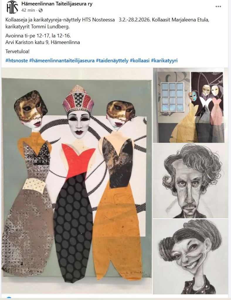 Vaikka olen pitänyt viimeaikoina matalaa profiilia taidesaralla, ystävät jaksavat ripustaa töitäni näytteille. Taiteilija kiittää.