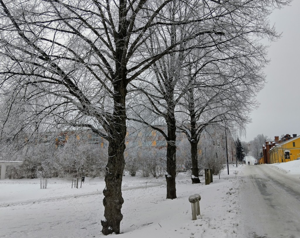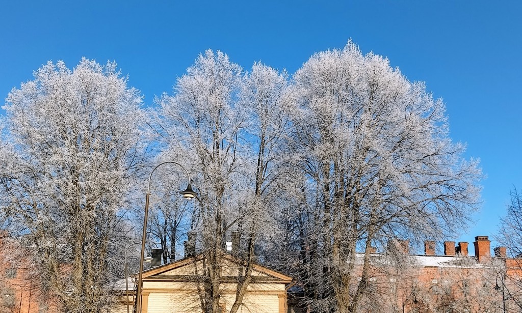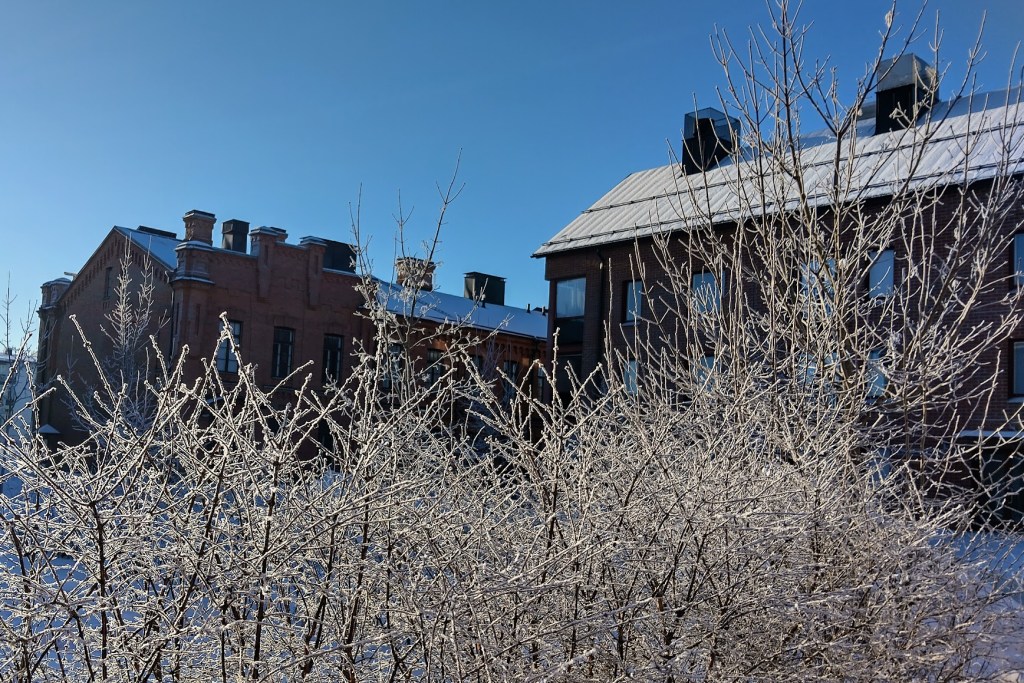 Mittarissa -25 astetta, pörssisähkö huippukallista. Sisällä on tavallista viileämpää eikä ulos tee mieli, vaikka aamu on aurinkoinen.