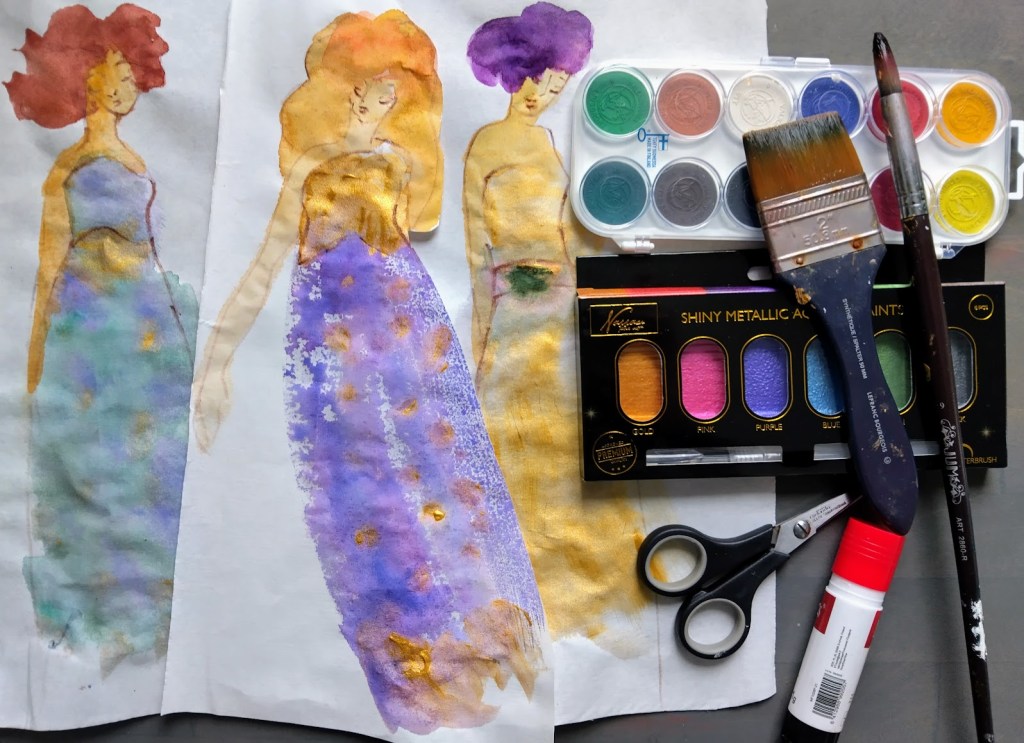 Jos ihmisellä riittää hulvatonta huumoria, se auttaa jaksamaan harmaiden päivien yli. Nyt hurmaavat akvarellineitoset ovat vallanneet ruokapöytäni ja minä vetäydyn suosiolla sohvannurkkaan syömään. (Ei saa kertoa lastenlapsille.)